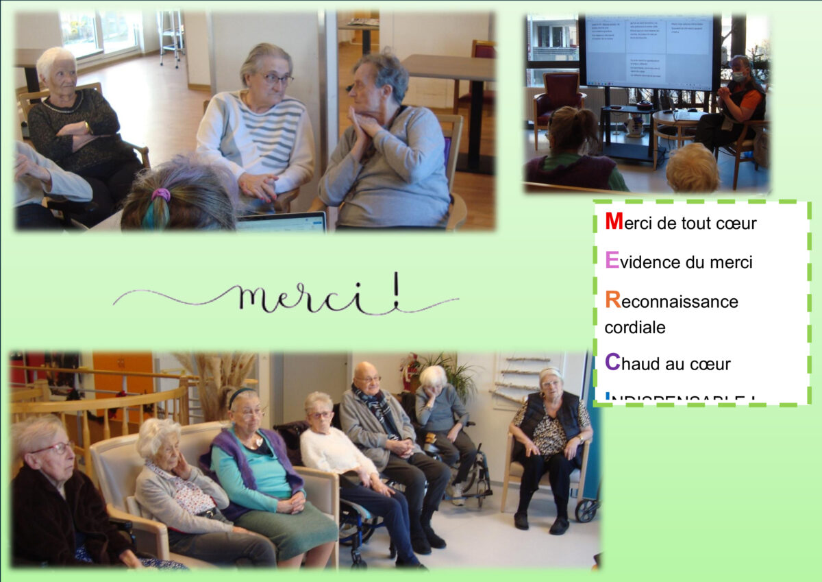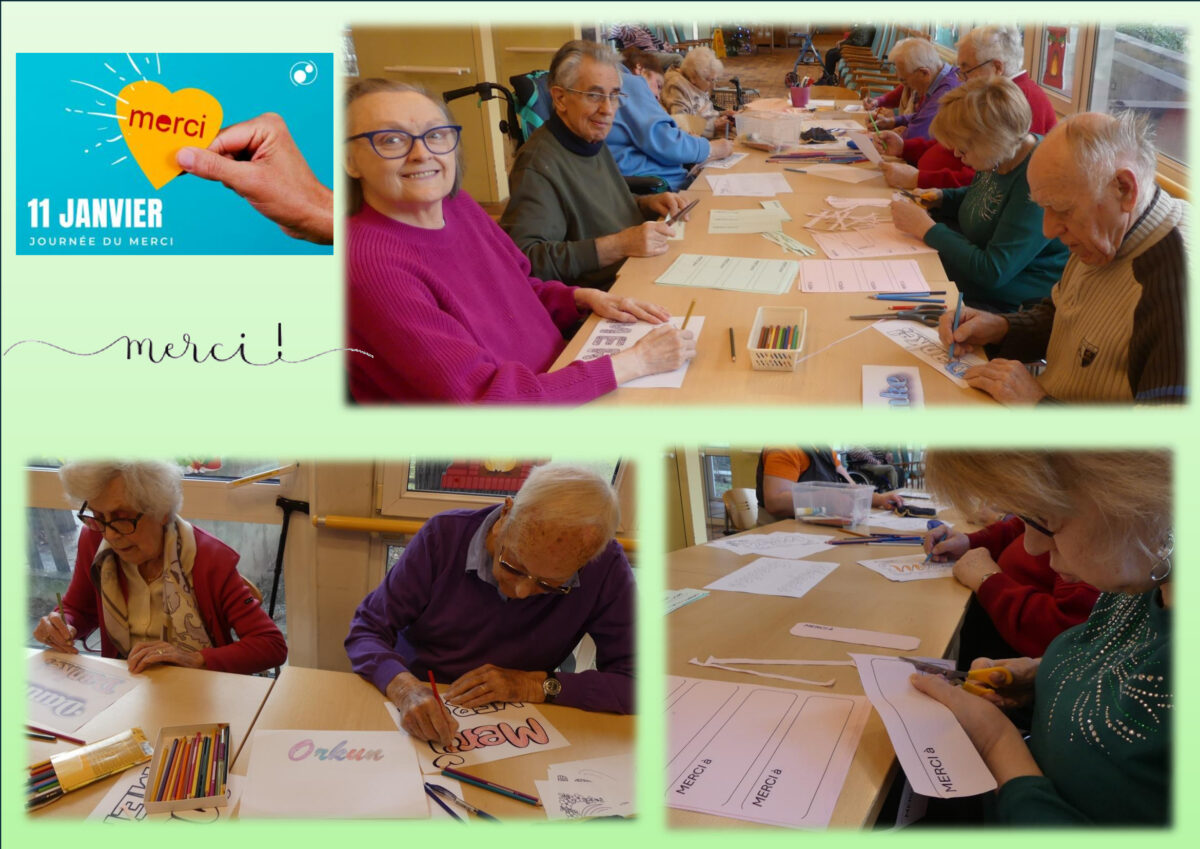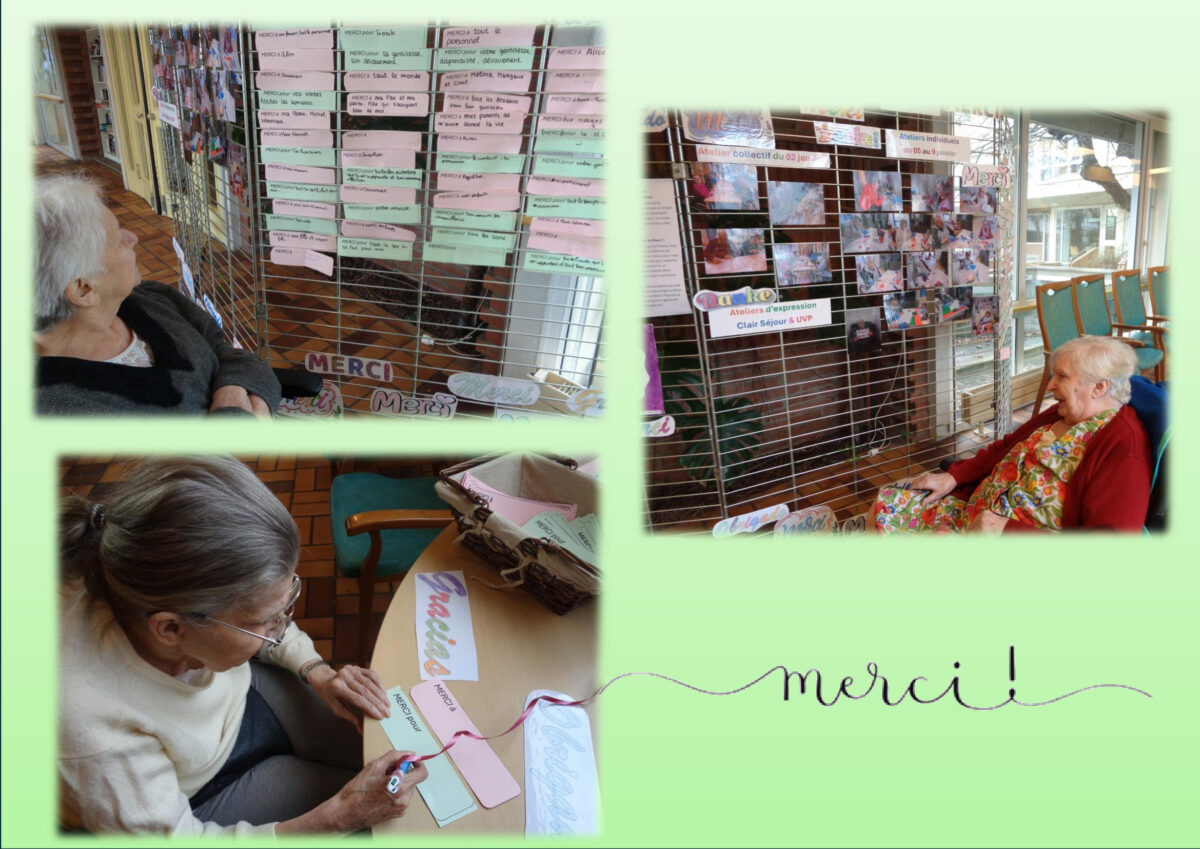 À l’occasion de la « Journée mondiale du Merci » du 11 janvier 2026, les résidents ont organisé un « Mur des Mercis » ouvert aux familles, visiteurs et professionnels. Des messages personnalisés et des mandalas « MERCI » en plusieurs langues, reflétant la diversité de leurs origines, ont été réalisés. Tout au long de la semaine, les activités artistiques ont favorisé l’expression et le partage, aboutissant à une exposition finale haute en couleurs, symbole de gratitude, de créativité et de lien social.