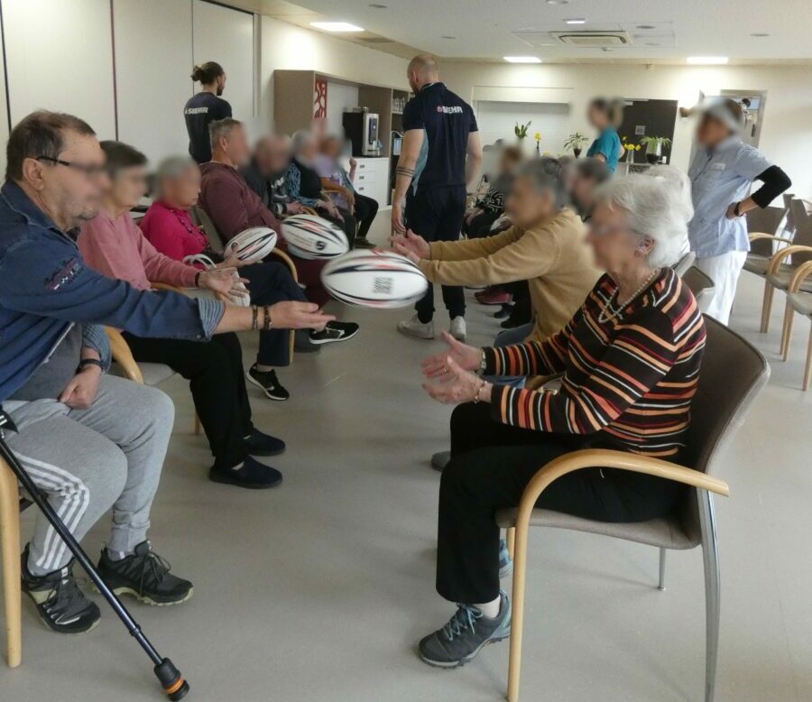 Enfin, les résidents ont pu découvrir le rugby adapté grâce à l’intervention de deux professionnels, dans le cadre d’un projet sportif SAR’SANTE (Santé, Autonomie, Rugby), branche du Strasbourg Alsace Club, qui se poursuivra dans les mois à venir.