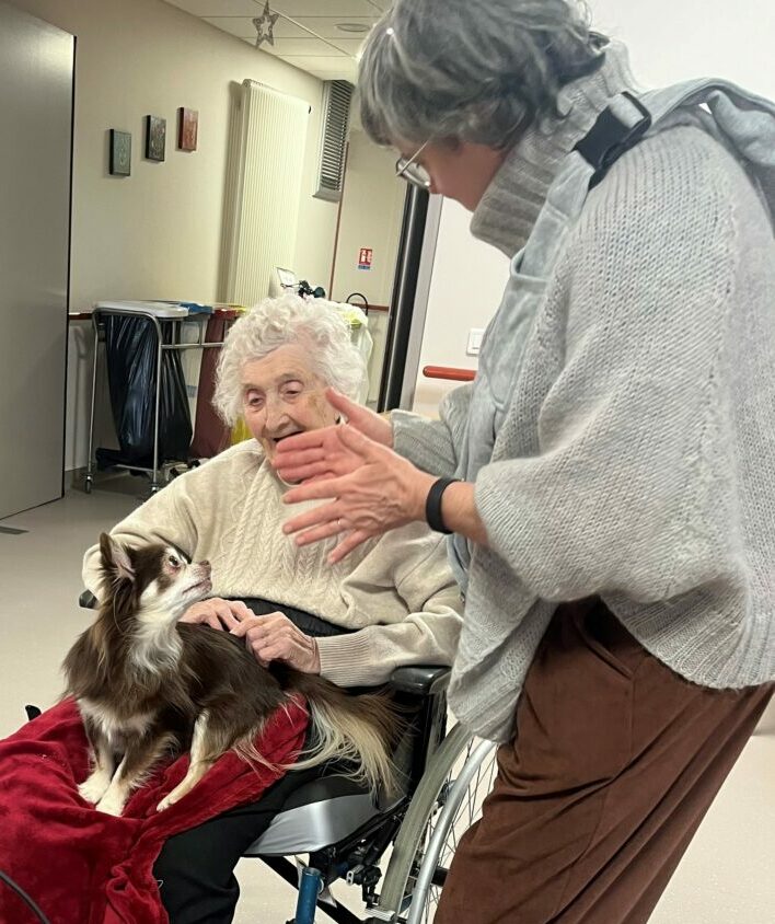 Au mois de janvier, les résidents ont retrouvé Valérie et son fidèle compagnon à quatre pattes pour une séance de médiation animale, devenue un rendez-vous mensuel très apprécié, placé sous le signe de l’échange et de la tendresse.